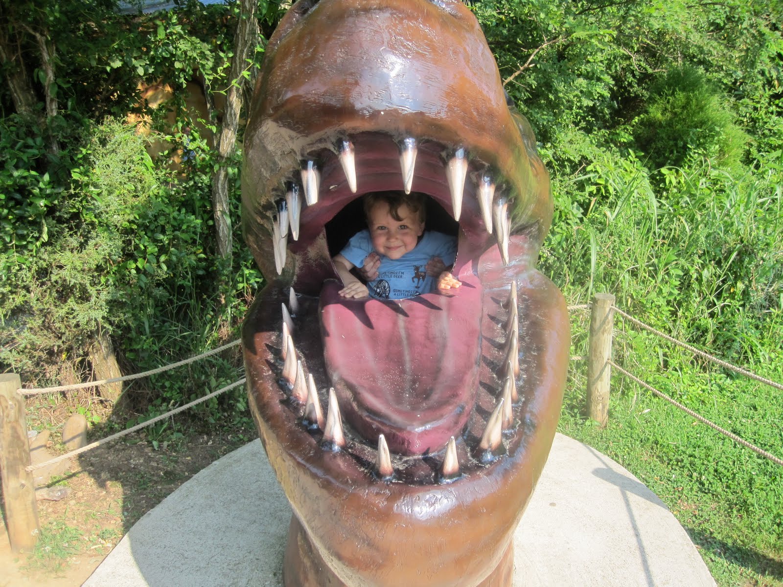 Well, there is so much to catch up on! Two weeks ago, I took the kids camping at Mammoth Cave by myself. Well we met some of my family down there, but Brett couldn't come. My Aunt and her 3 kids camped next to us. We were tent camping without electricity on what happened to be the hottest week of the year so far. Let's just say it was sweaty. There is a lot to do near Mammoth Cave, and we went to Dinosaur World first. Duncan had a blast!
