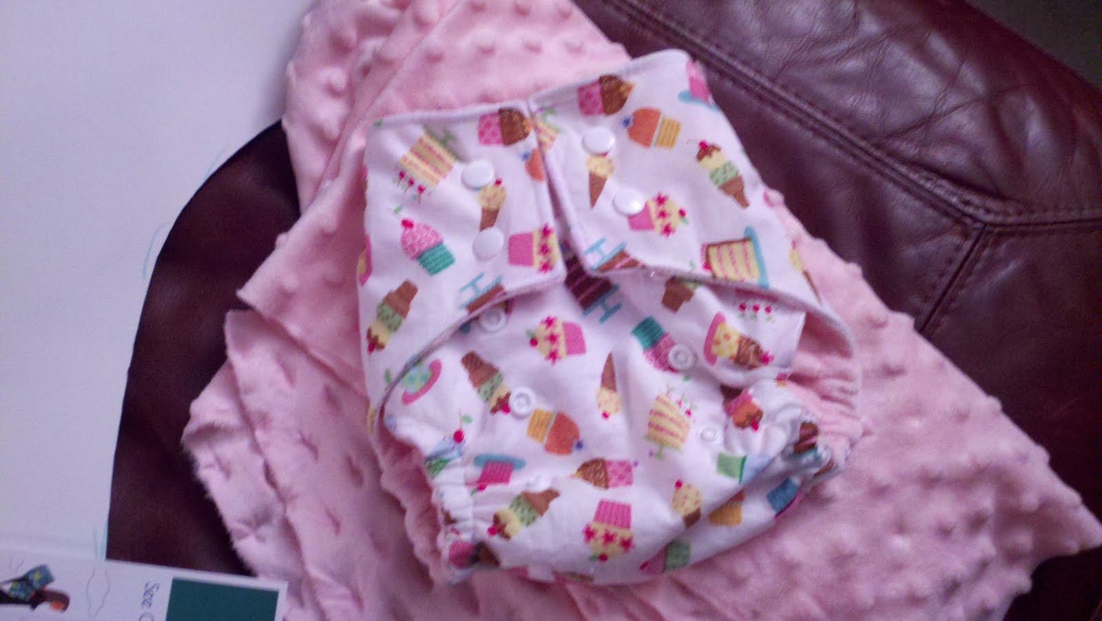 It's a cotton outer with hidden PUL (waterproof fabric) and pink minky dot on the inside. Audrey only wears diapers when she sleeps now so my testing opportunities are limited (I wasn't ready to potty train!). When I went in to get her this morning she was wearing it and she told me, "It's comfortable!" Of course she jarbled the word all up. It was real cute and made me feel good. She's never told me a disposable diaper was comfy!