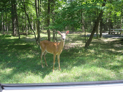 On our way back to the campsite a deer was standing right next to the road. He came right up to the car. I guess people must feed them often.