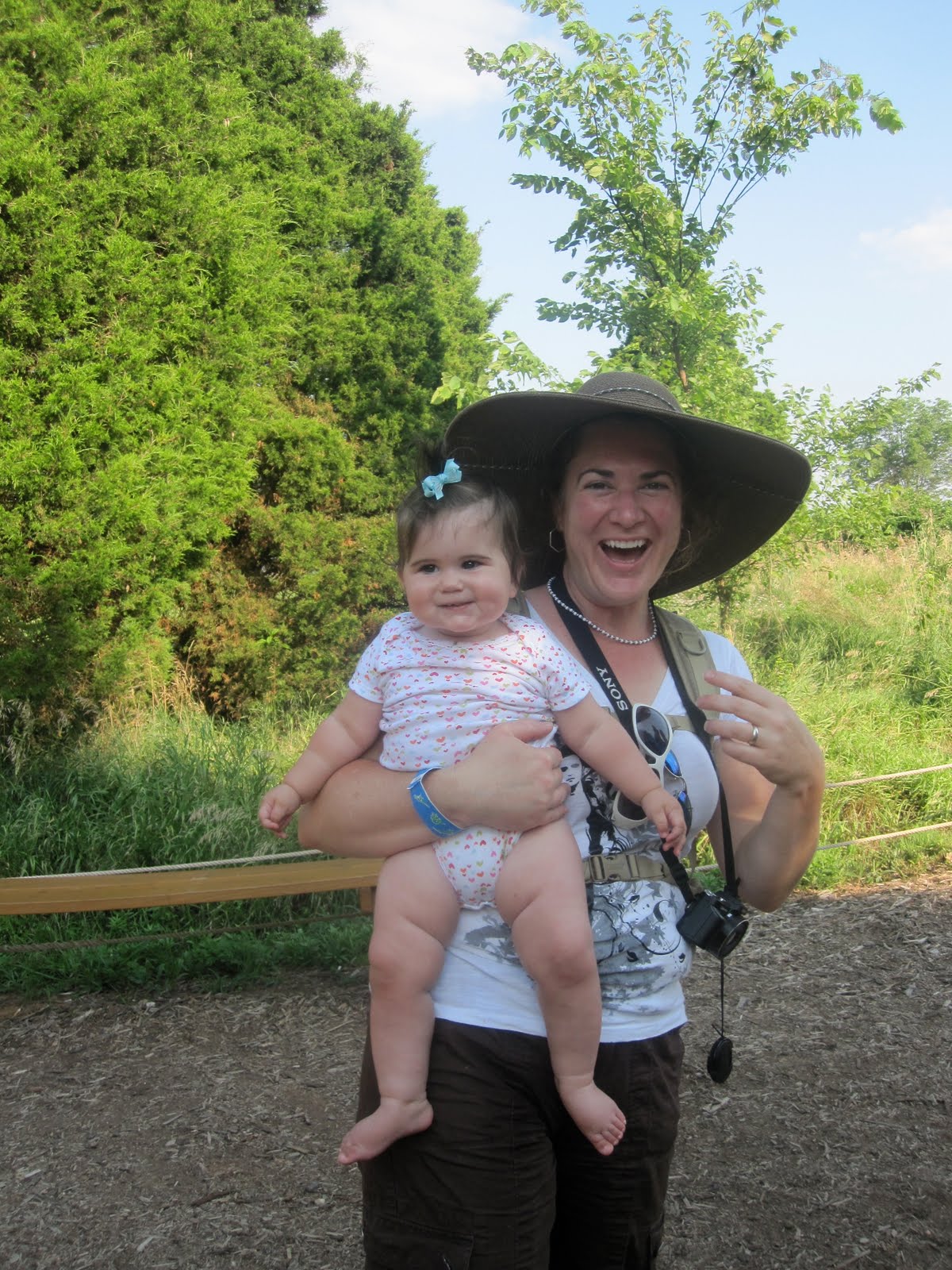 Audrey had fun pulling up on the gates and watching. She also liked pulling out handfuls of grass.